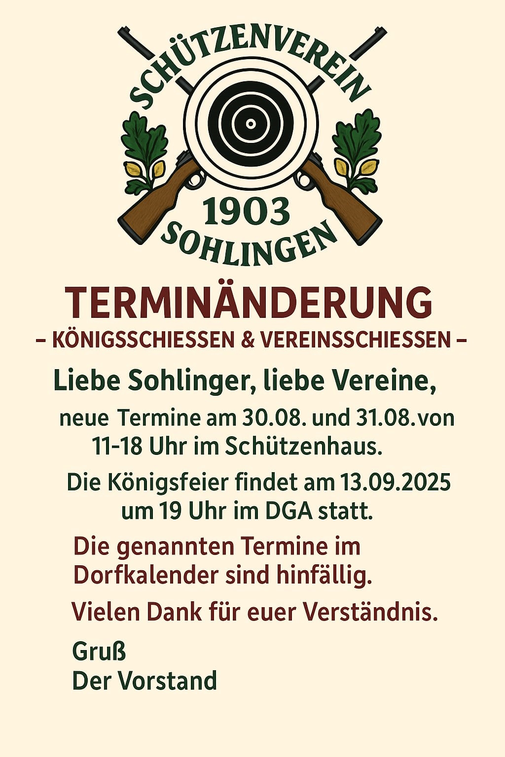 bitte beachtet, dass sich der Termin für das diesjährige Königsschießen geändert hat!